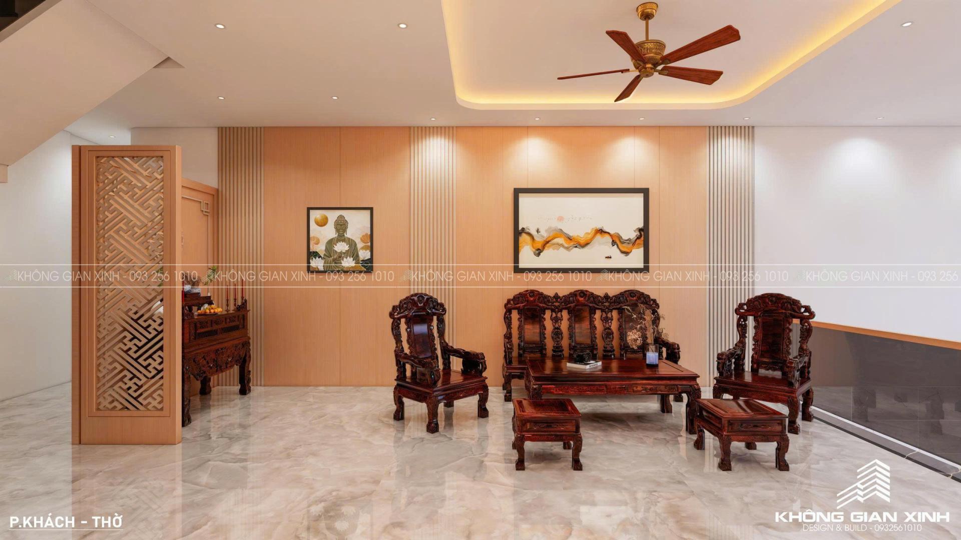 - Khu kinh doanh, Bếp ăn, khách, thờ, 04 phòng ngủ và 03 công trình phụ.